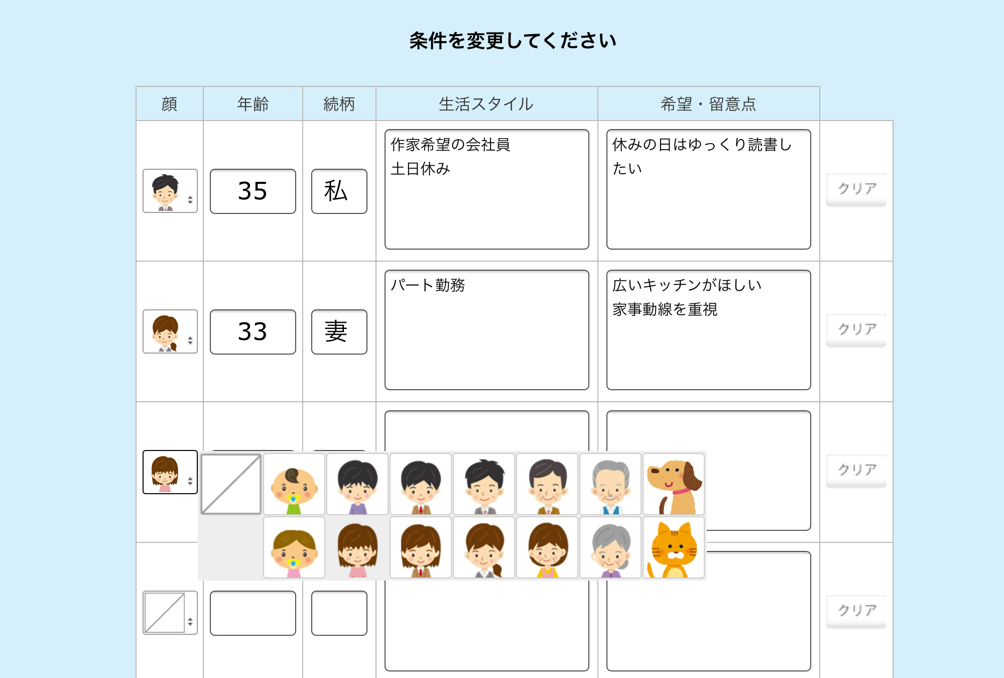 家族構成をきめる